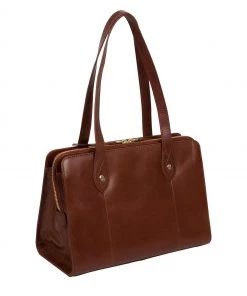 Pure Luxuries London Bembridge Vegetable Tanned Leather Extra Large Shoulder Bag Chestnut Brown