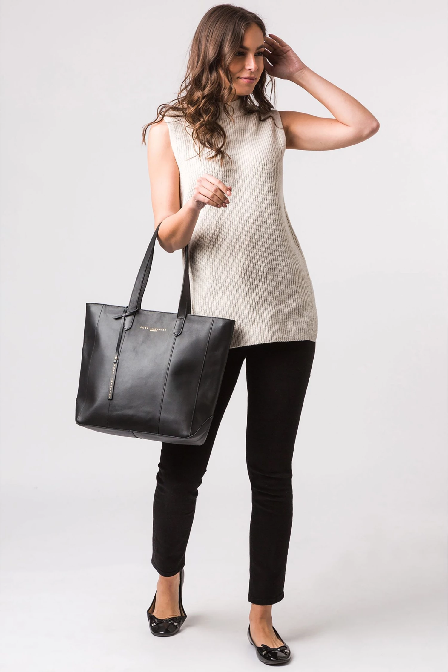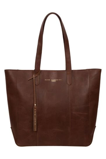 The ‘Amberley’ leather tote bag is handcrafted from high-quality vegetable-tanned leather with a beautifully soft finish and is part of the Pure Luxuries Prestige Collection, elevating classic designs with high-quality materials and contemporary touches. A zip-over top fastening secures an unlined and soft to the touch, natural leather interior with a fuss-free, spacious central compartment for convenient storage. Featuring matching leather carry handles for maximum comfort. Adorned with the stunning Pure Luxuries leather charm and gold logo for the perfect finishing touch.