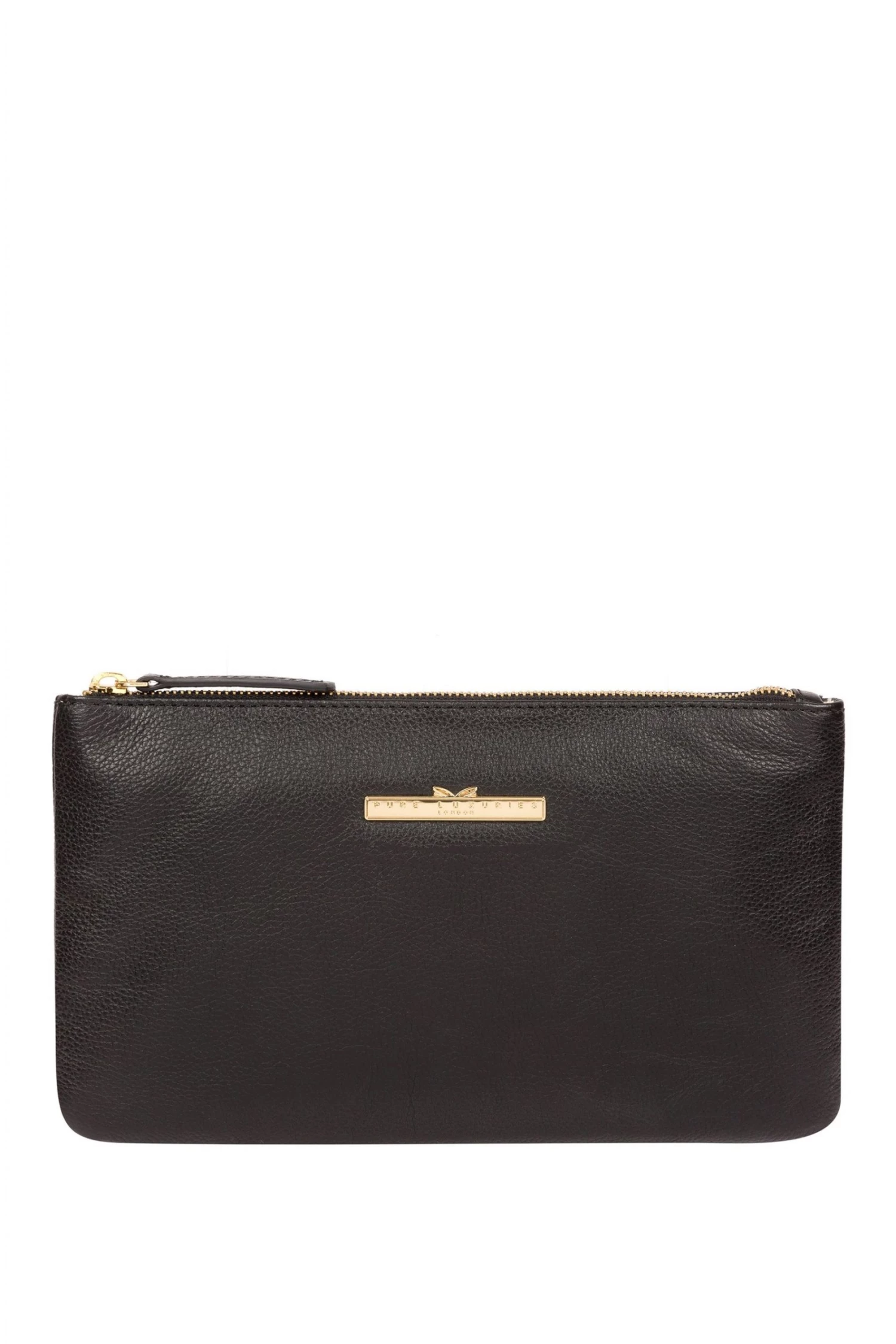 The ‘Arlesey’ leather clutch bag is handcrafted from naturally milled leather with a beautifully distinct fine grain feel. Part of the Pure Luxuries Couture Collection featuring a delightfully sophisticated range of bags with a luxurious finish. A zipover top secures a gorgeous 100% natural cotton lined interior with two slip pockets. Furnished with eye-catching gold coloured metal fittings for the perfect finishing touch. Complemented by the elegant yet simple Pure Luxuries Couture logo plate.