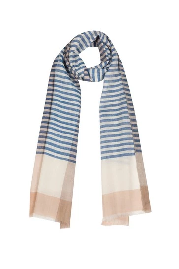 The ‘Accent’ scarf from Pure Luxuries London is woven from 50% cashmere and 50% merino wool blend for a soft yet durable feel. Featuring a classic blue and white striped design with flourishes of cream tones. Perfect all year round for whenever the cold weather hits. An intricate knitted design gives this scarf a unique look. Pair with our other matching cashmere accessories. Presented in a 100% cotton Pure Luxuries branded pouch, ideal for gifting.