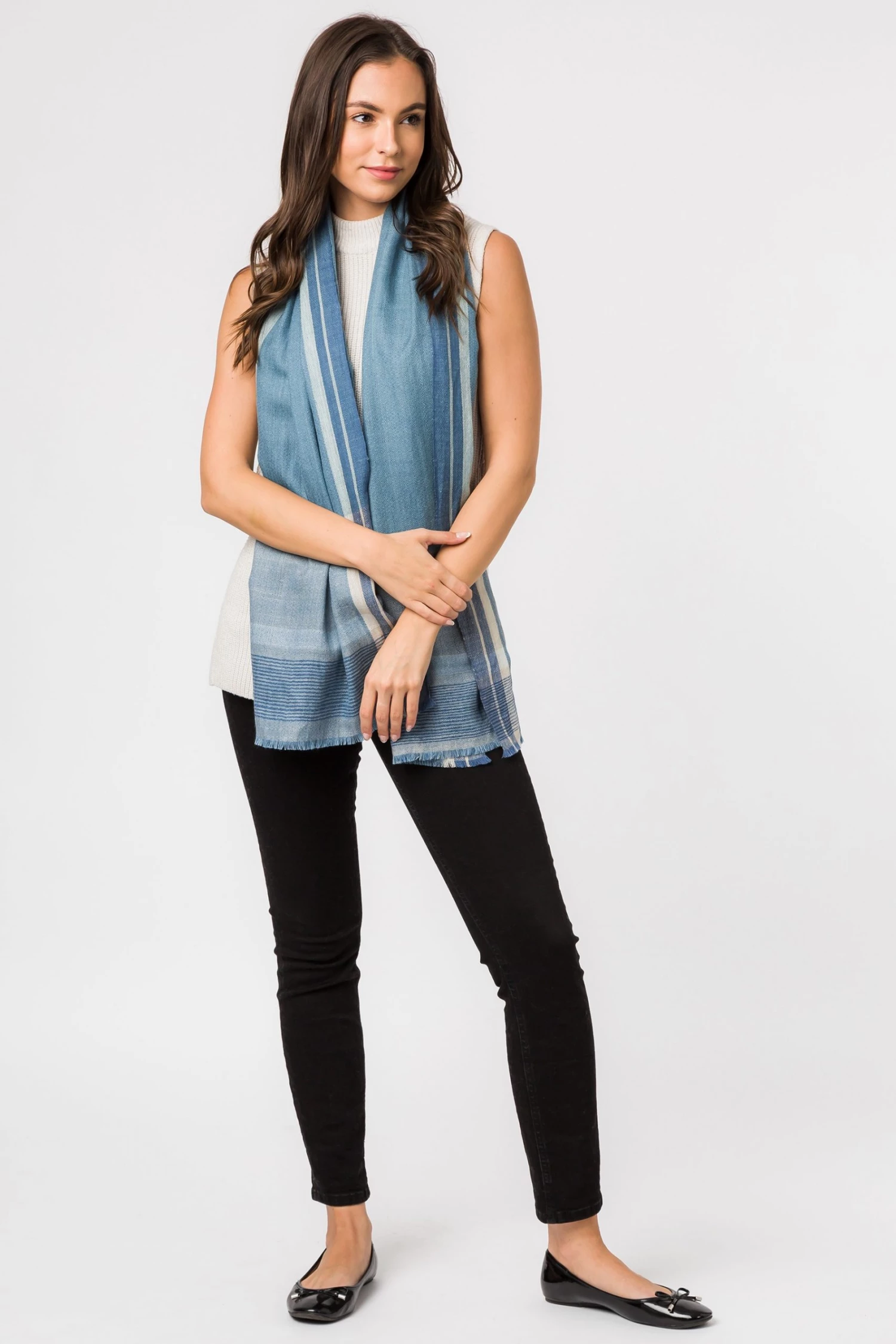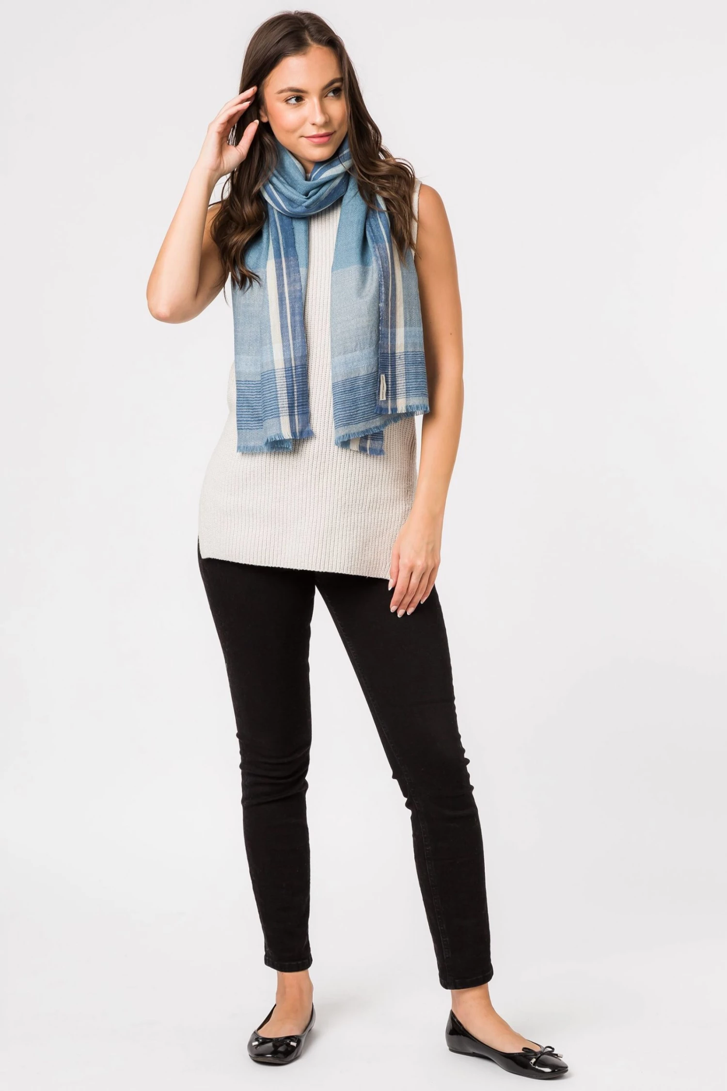 The ‘Earth’ pashmina from Pure Luxuries London is woven from 50% cashmere and 50% merino wool blend for a soft yet durable feel elevated by the blue tone design. Create eye-catching looks in an instant with this beautiful and classic accessory. Can be worn multiple ways around the neck, depending on your preference. Pair with our matching cashmere accessories. Presented in a 100% cotton Pure Luxuries branded pouch, ideal for gifting.