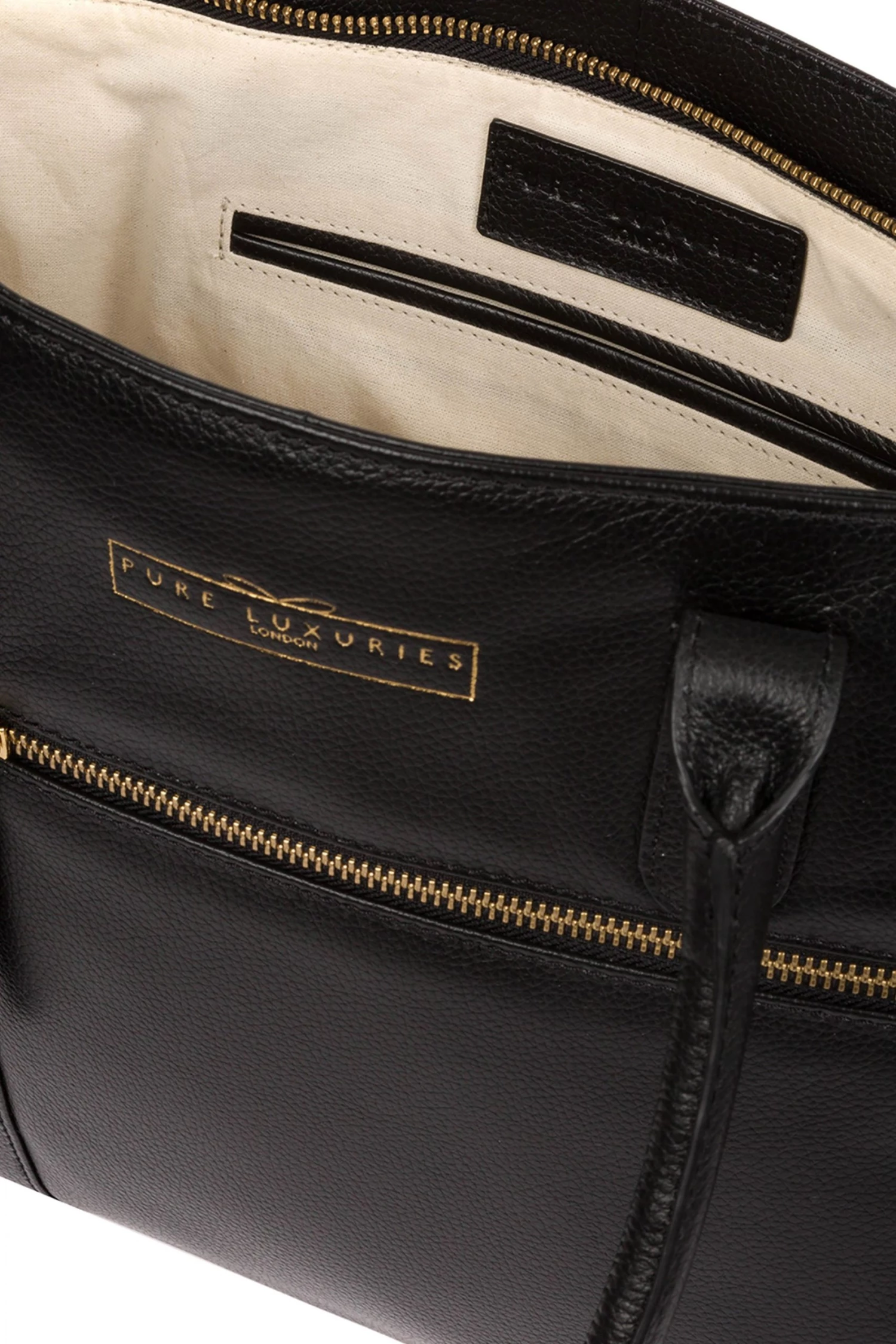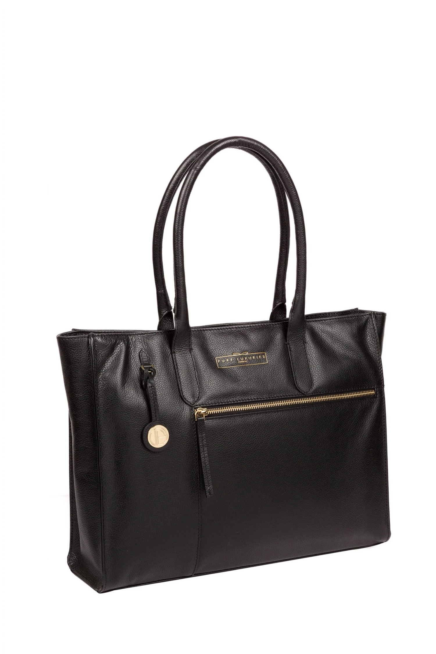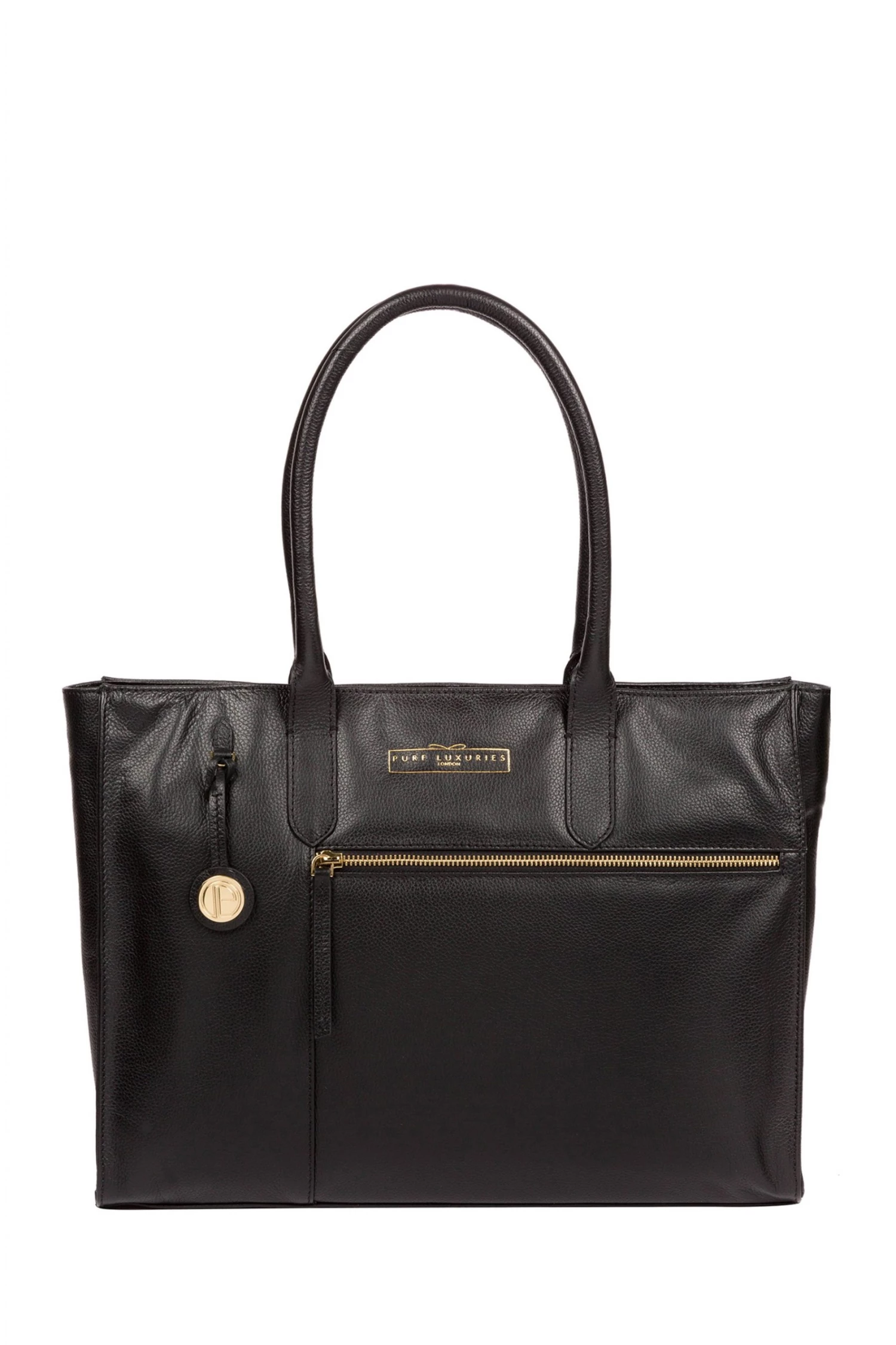 Part of the Pure Luxuries Classic Collection featuring beautiful classic designs with a luxurious finish, the ‘Buckingham’ tote bag is crafted from genuine, supple leather with a beautifully soft fine grain finish. Two exterior pockets; one zipped and one slip, provide on-the-go storage and are complemented perfectly by two slip pockets on the interior. A zipover top fastening conceals a gorgeous, 100% natural cotton lined interior and comes with matching leather carry handles. Furnished with gold coloured eye-catching metal fittings for the perfect finishing touch and features the gorgeous Pure Luxuries charm and logo.