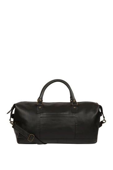 The ‘Cargo’ leather holdall is made from genuine leather with a pebble grain feel that gives the bag a handsome and distinctive finish. Part of the Pure Luxuries Originals Collection, named for its classic designs that have been elevated by high-quality materials. Adorned with the rugged and robust bronze-coloured fittings which add a rustic look to the bag. A metal zipped top secures the central compartment lined with a natural and untreated 100% cotton lining for a soft yet durable interior. One zipped pocket and one slip pocket on the exterior of the bag provide on-the-go storage. Comes with an adjustable and detachable leather topped woven canvas strap which alongside a press stud design offers a comfortable and adaptable carry. Embossed with the Pure Luxuries logo for a distinct yet subtle addition to the bag.