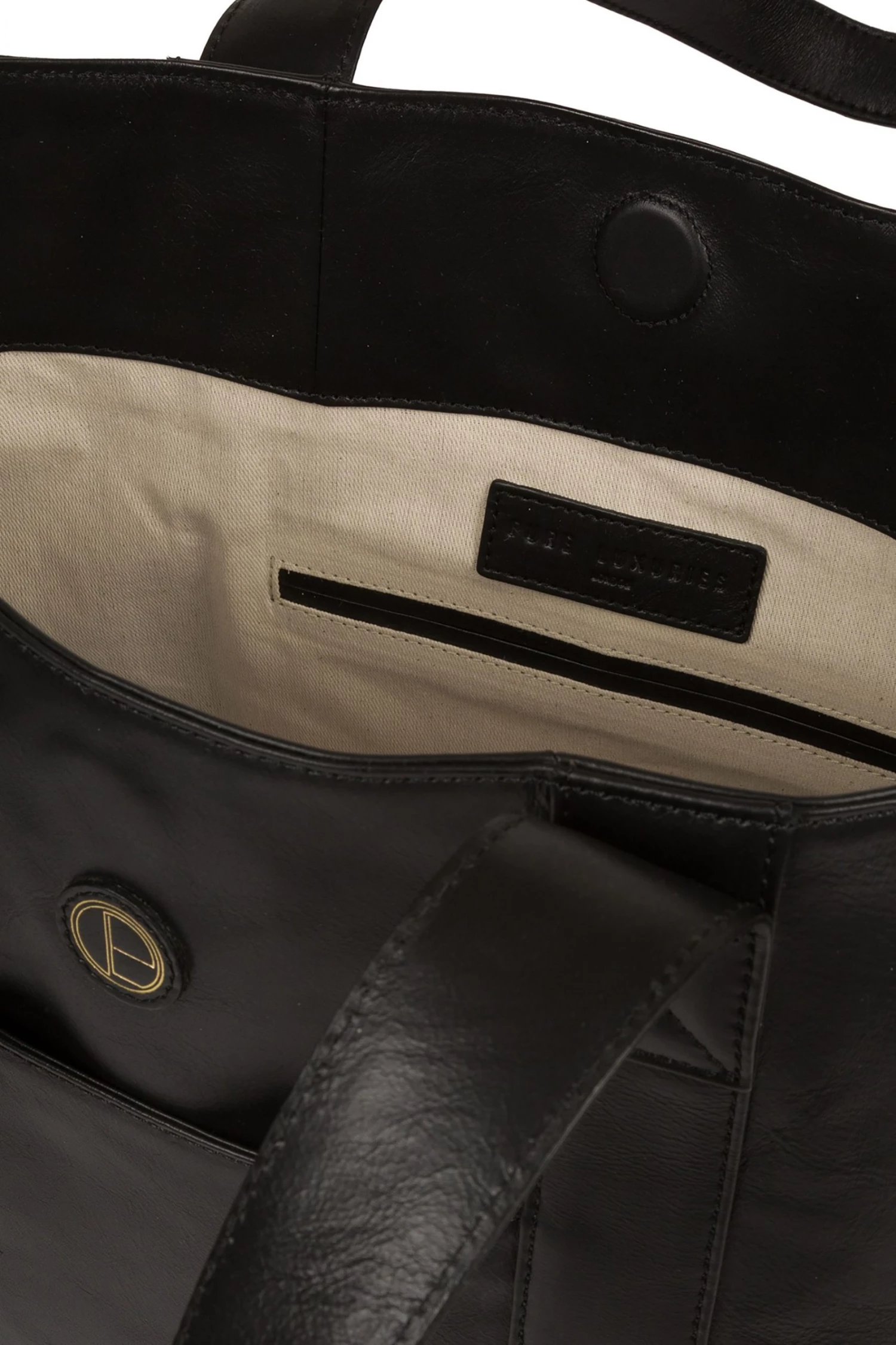 Part of the Pure Luxuries Vintage Collection, featuring timeless designs with a contemporary twist, the ‘Cranbrook’ tote bag is handcrafted from natural leather with a luxurious patina. Secured with a magnetic closure, the spacious central compartment is fully lined with natural 100% cotton and features two internal pockets, ideal for a smart phone and keys. Additional storage is provided with an exterior full-length slip pocket, perfect for when you are on-the-go. Comes with matching leather handles and finished with the distinct Pure Luxuries charm for a stylish touch.