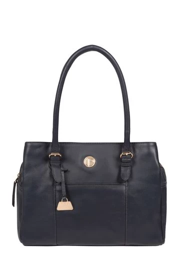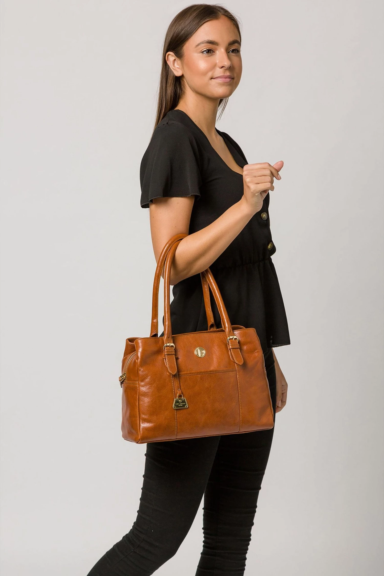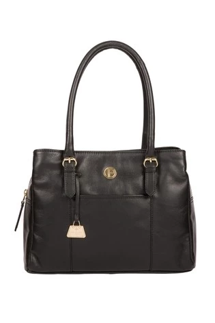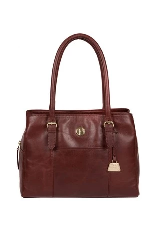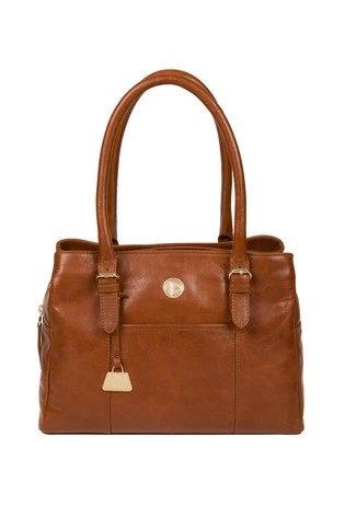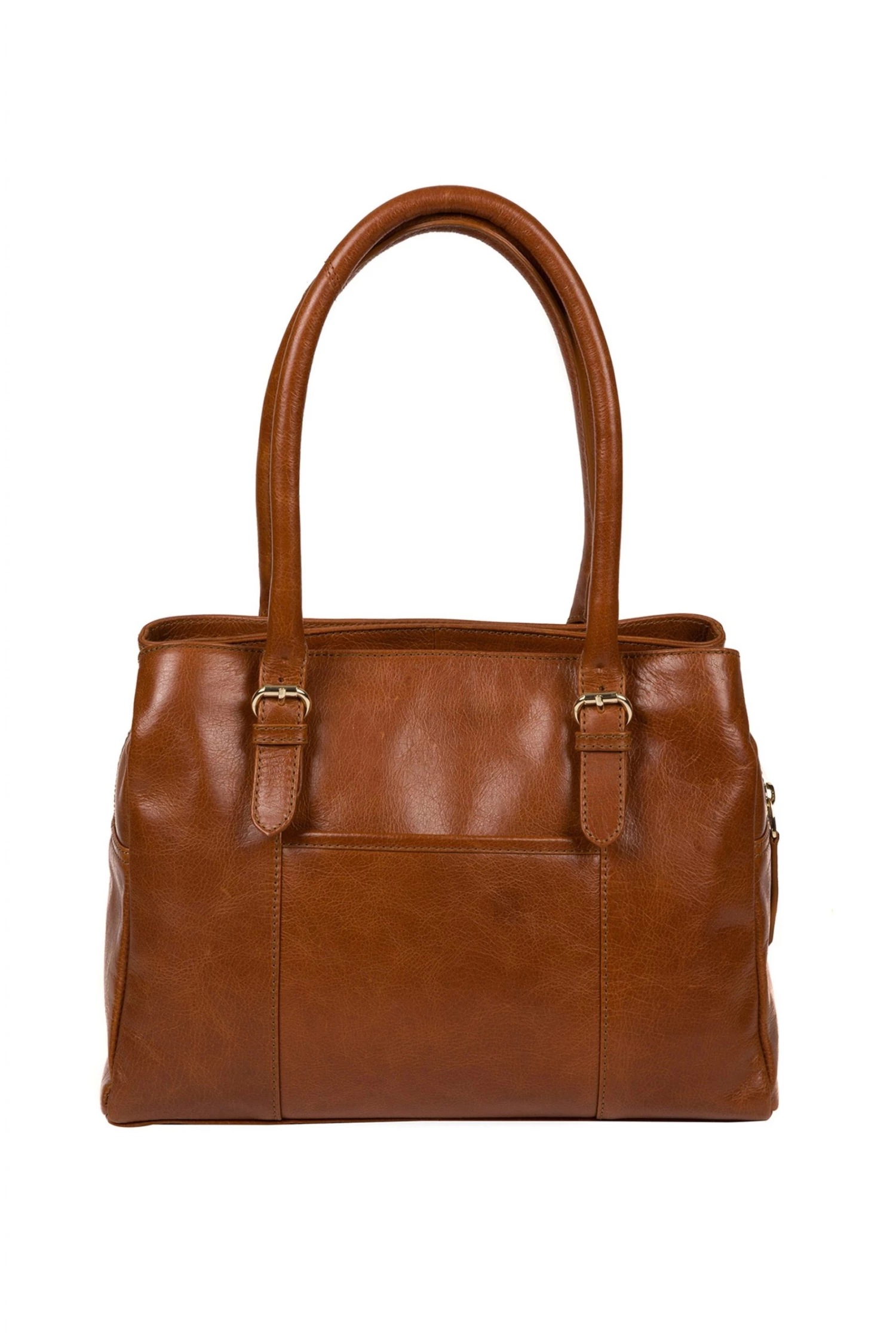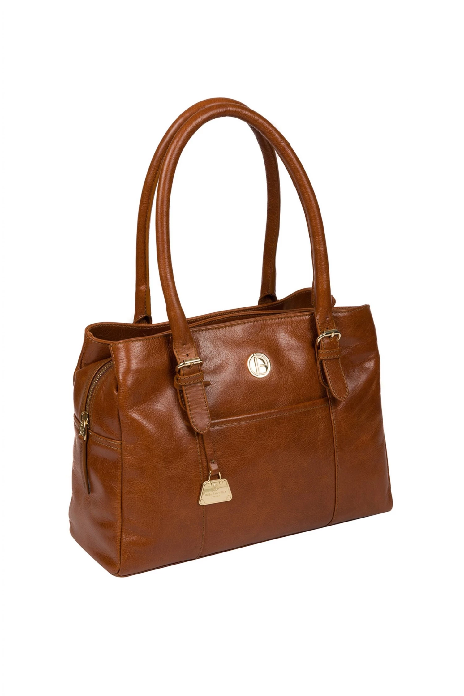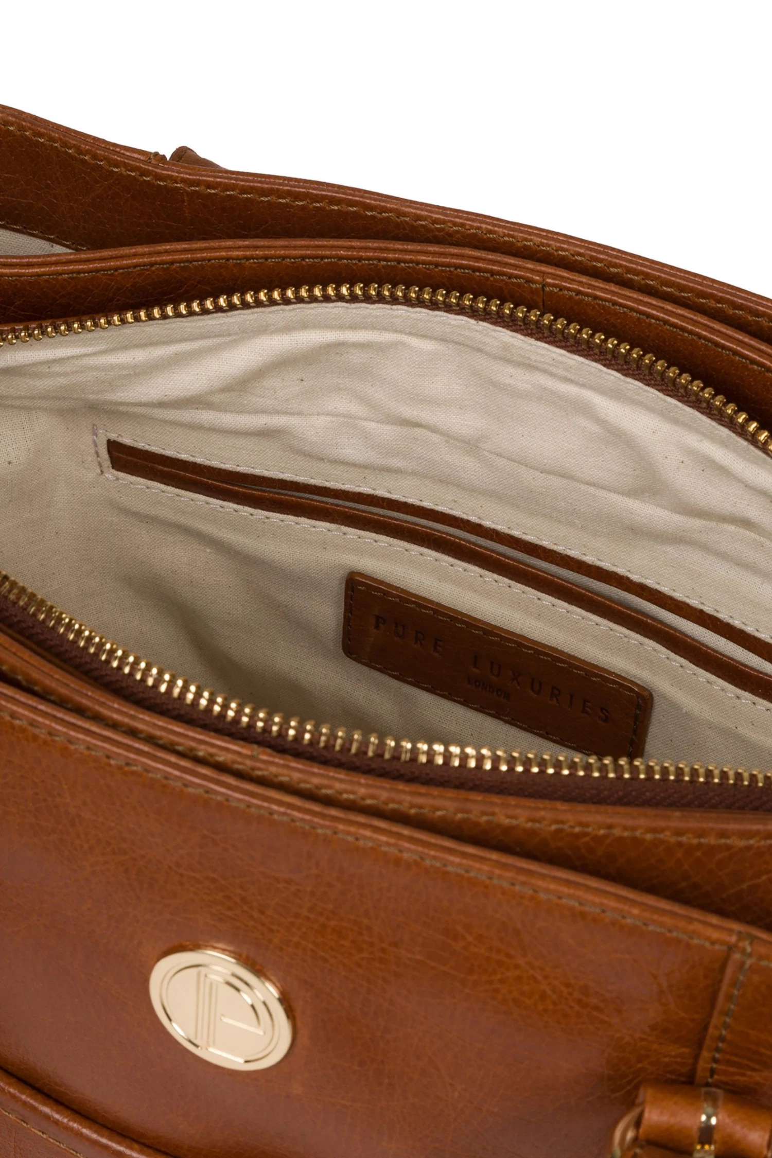 Part of the Pure Luxuries ‘Bloomsbury Collection’ featuring classic designs handcrafted from high quality, natural leather and finished with luxurious gold fittings, the Fleur handbag is a stylish and practical way to stay organised on-the-go. A zipover top secures a natural and untreated 100% cotton lined central compartment, between two full-length pockets secured with magnetic stud closures. Offering ample storage space, additional pockets are provided on the exterior with two slip pockets on the front and reverse. With adjustable matching leather handles for comfortable wear and adorned with the Pure Luxuries ‘Bloomsbury Collection’ gold plaque and charm for a touch of stylish sophistication.
