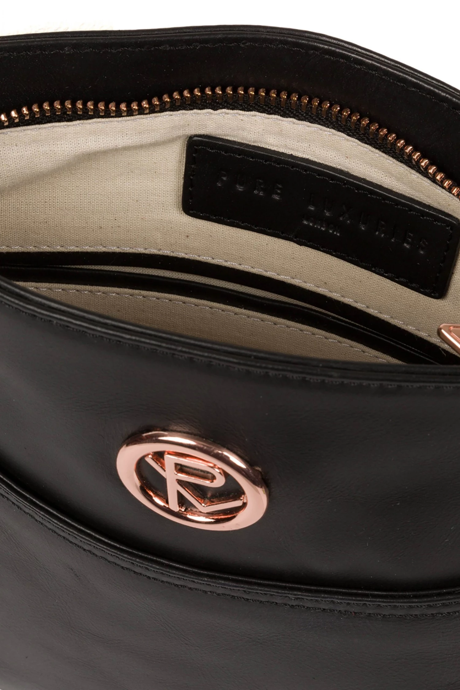 The ‘Gilpin’ leather cross-body bag is handcrafted from beautiful leather for a luxuriously smooth finish that is full of character. Part of the Pure Luxuries Gold Collection named after the rose gold fittings, that adorn the bags. A zipover top conceals a spacious compartmented lined with 100% cotton lining which is complemented by two slip pockets on the interior. Two full-length slip pockets line the outside of the bag – perfect for on-the-go storage. Comes with a thin and beautiful strap that has a drop length of 65cm. Adorned with the reinvented rose gold Pure Luxuries logo.