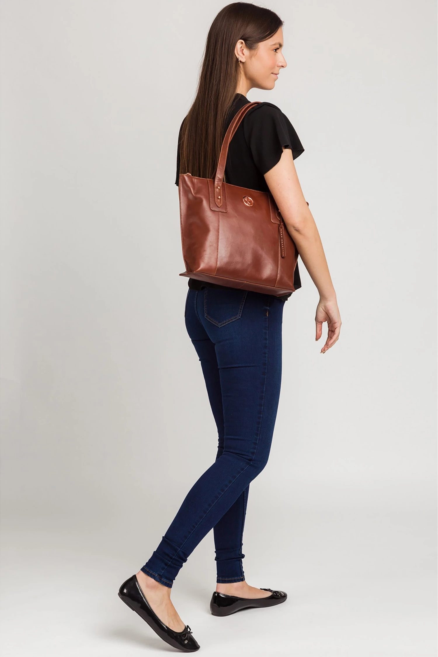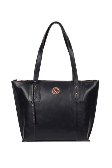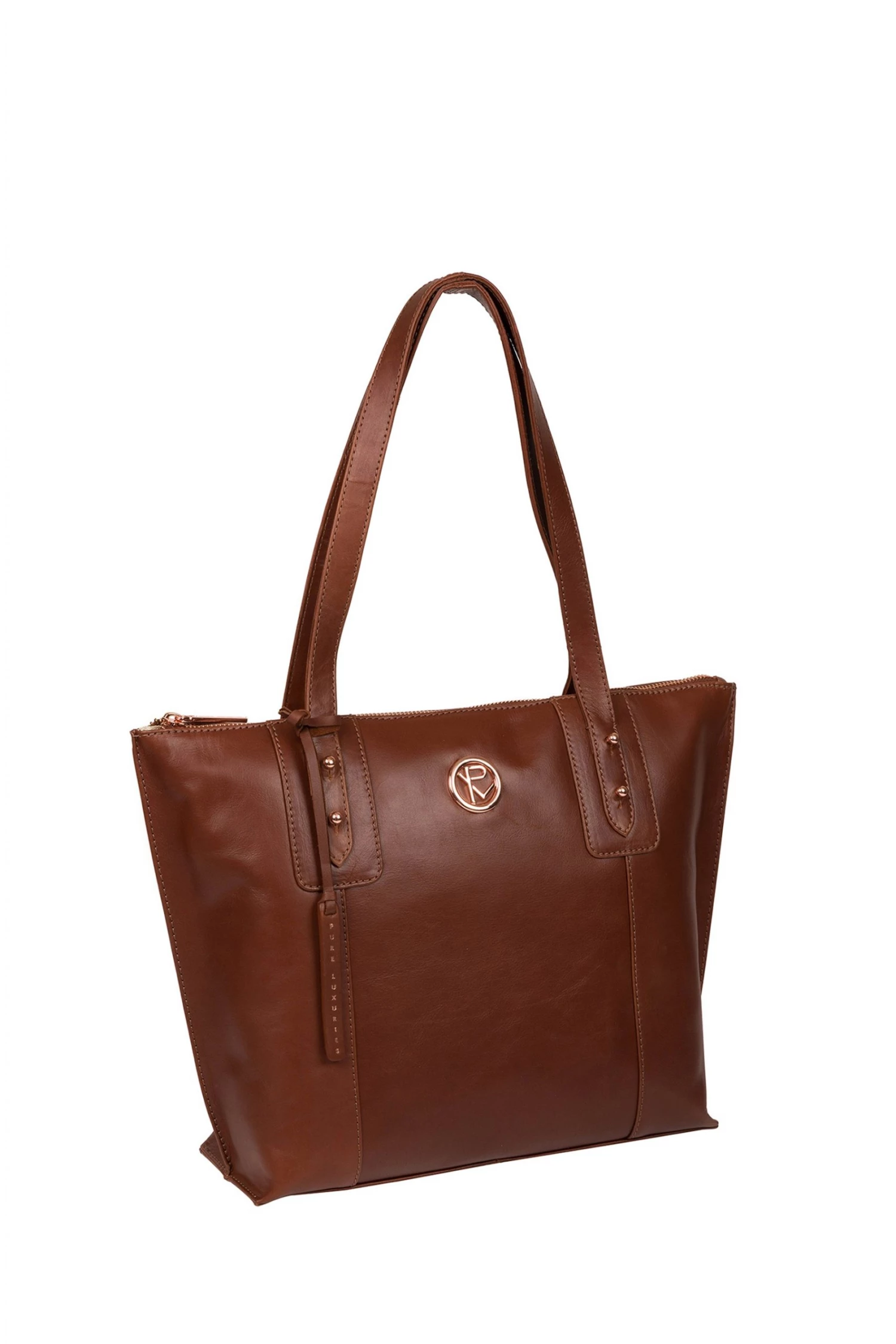 The Goya leather tote bag is handcrafted from beautiful leather for a luxuriously smooth finish that is full of character. Part of the Pure Luxuries Gold Collection named after the Rose Gold fittings, that adorn the bags. A zipover top secures the central compartment which is lined with a 100% cotton lining for a luxurious finish which is complemented by two perfectly sized slip pockets. Comes with beautiful matching handles that have a drop length of 25cm. Adorned with the reinvented rose gold Pure Luxuries logo and rose gold embossed charm.
