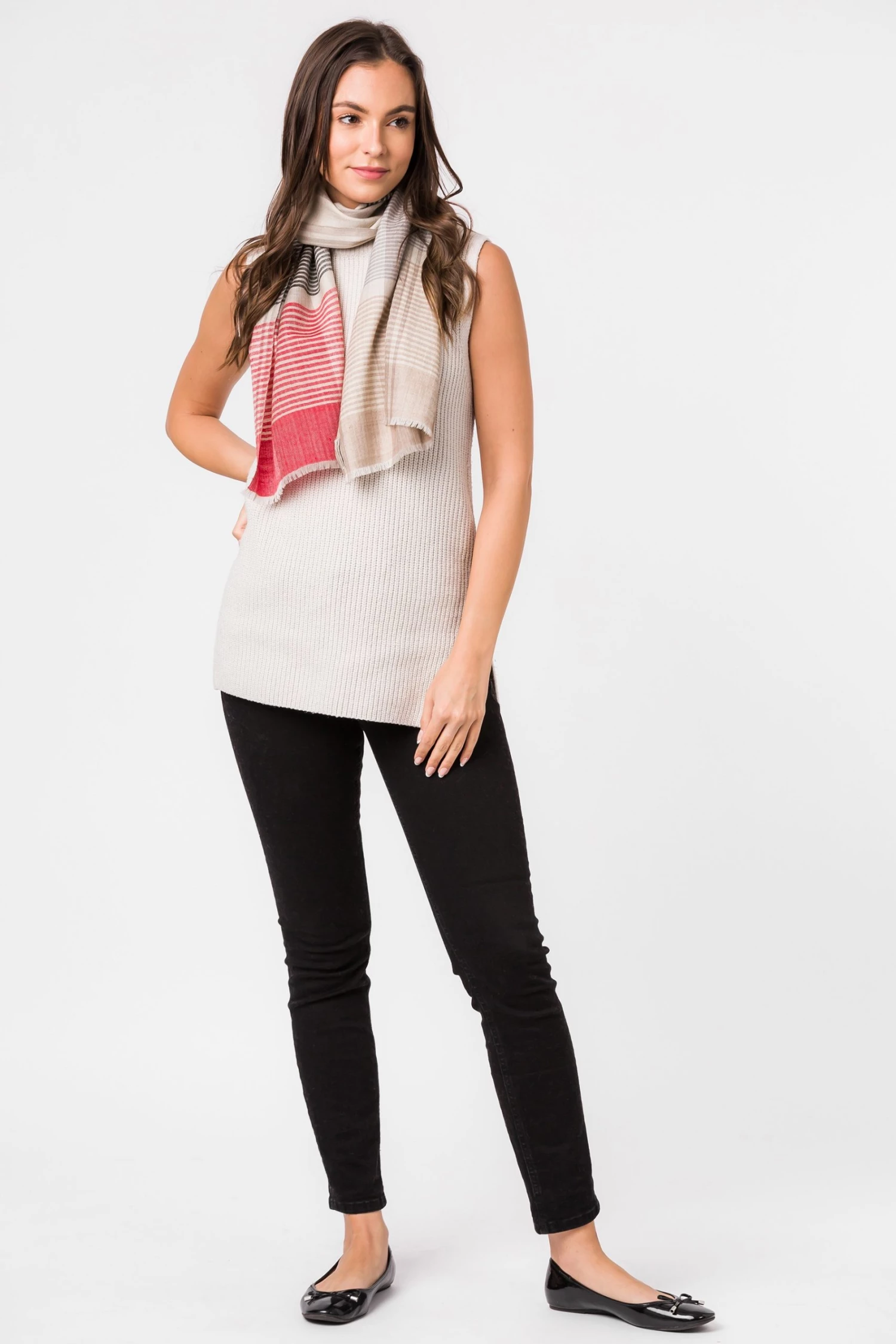 The ‘Neptune’ neckerchief from Pure Luxuries London is woven from 50% cashmere and 50% merino wool blend for a soft yet durable feel. An elegant mix of red, black and tan with a striking off white. This versatile accessory can be worn around the neck as a neckerchief or as a smaller traditional scarf, adding subtle sophistication to your outfit. Pair with our other matching cashmere accessories. Presented in a 100% cotton Pure Luxuries branded pouch, ideal for gifting.