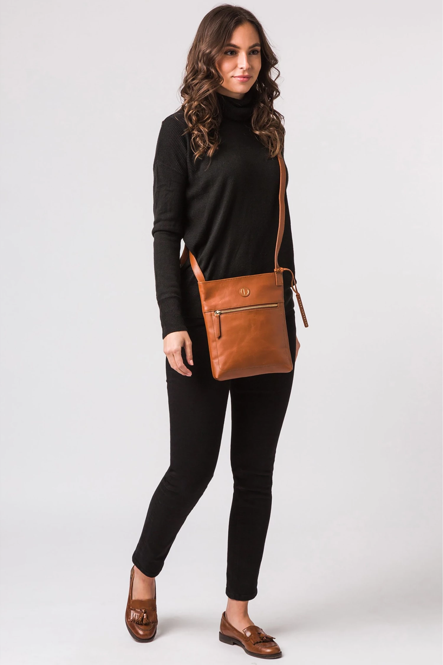 Part of the Pure Luxuries Vintage Collection, featuring timeless designs with a contemporary twist, the ‘Knook’ cross-body bag is handcrafted from natural leather with a luxurious patina. Secured with a zip-over top, the spacious central compartment is fully lined with natural 100% cotton and features two slip pockets, ideal for a smartphone and keys. Additional storage is provided on the exterior with two handy pockets, perfect for when you are on-the-go. Comes with an adjustable leather strap with a drop length of up to 70cm for comfortable wear and adorned with the distinct Pure Luxuries logo for a stylish touch.