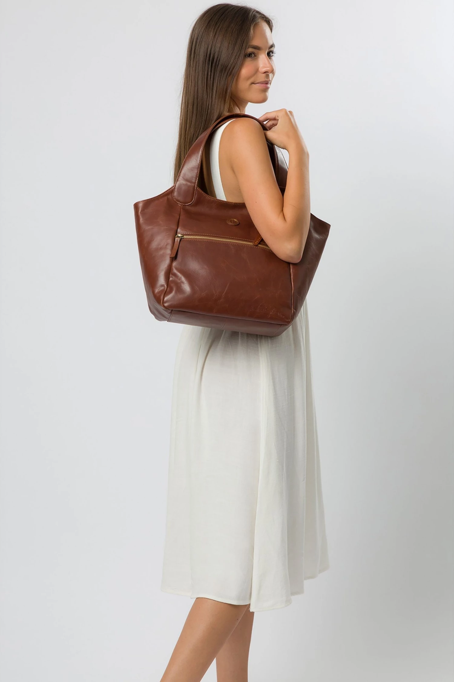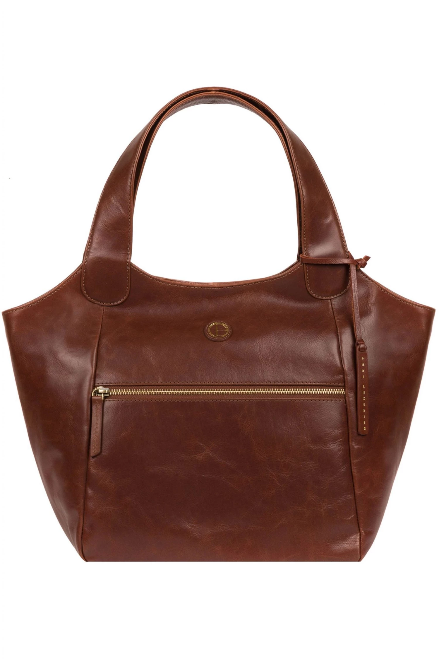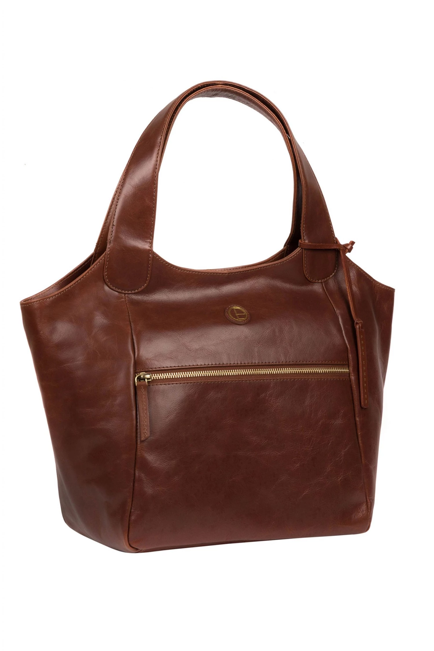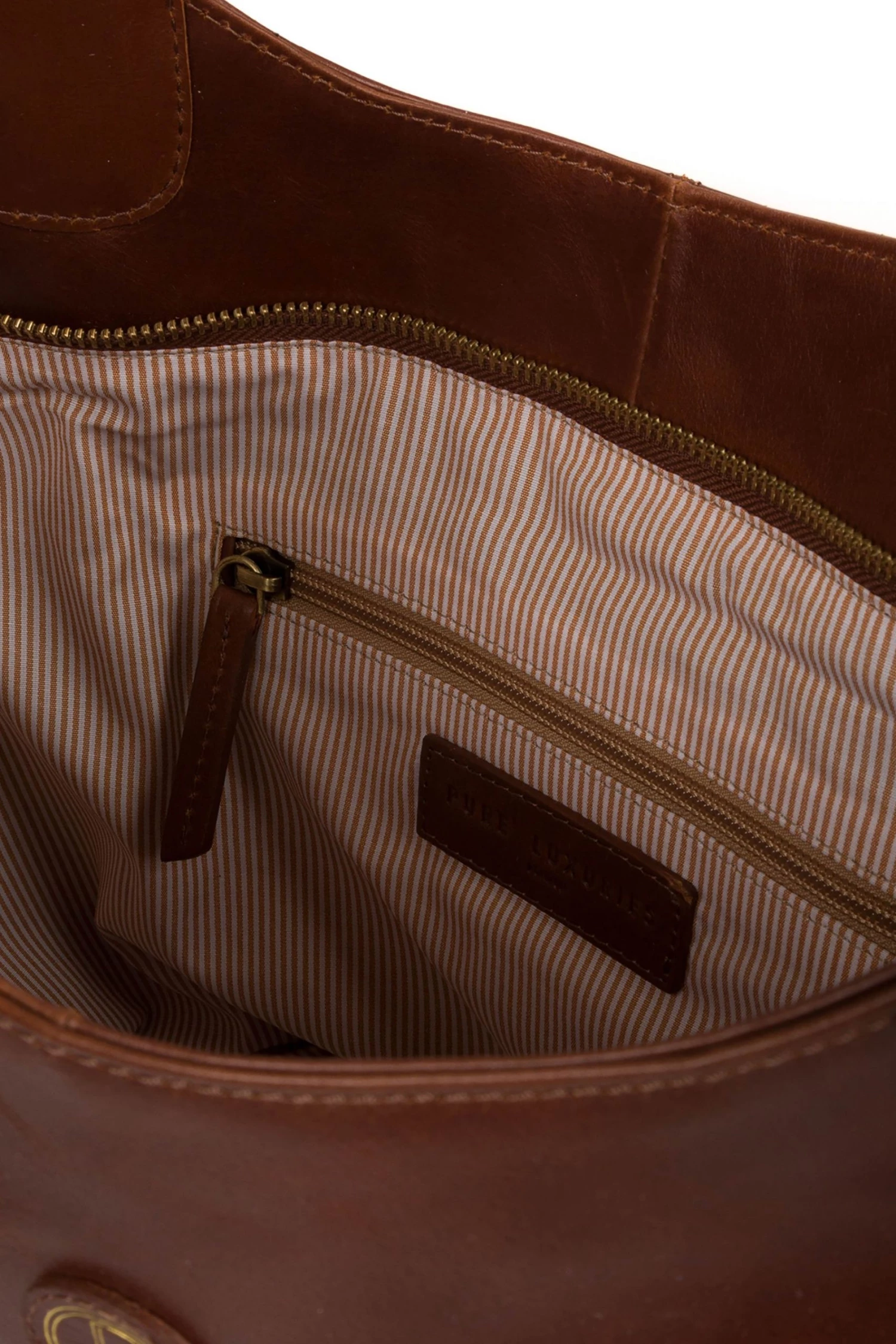 Part of the Pure Luxuries Vintage Collection, featuring timeless designs with a contemporary twist, the Loxford tote bag is handcrafted from natural leather with a luxurious patina. Secured with a zipover closure, the spacious central compartment is fully lined with natural 100% cotton and features two internal pockets, ideal for a smart phone and keys. Additional storage is provided with an exterior full-length zipped pocket, perfect for when you are on-the-go. Comes with matching leather handles and finished with the distinct Pure Luxuries charm for a stylish touch.