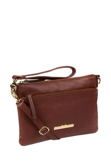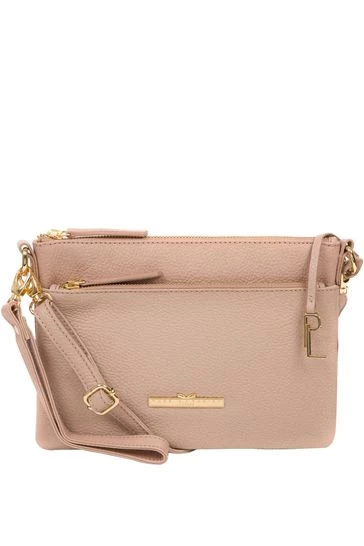 The Lytham cross body clutch bag from Pure Luxuries London is crafted from natural leather that has a distinct fine-grain feel and is furnished with eye-catching gold-coloured metal fittings. A zip-over top secures a gorgeous 100% natural cotton lined interior with two slip pockets and features an external zipped pocket for additional on-the-go storage. Adorned with a detachable leather shoulder strap and carry handle, finished with the elegant yet simple Pure Luxuries London logo plate.