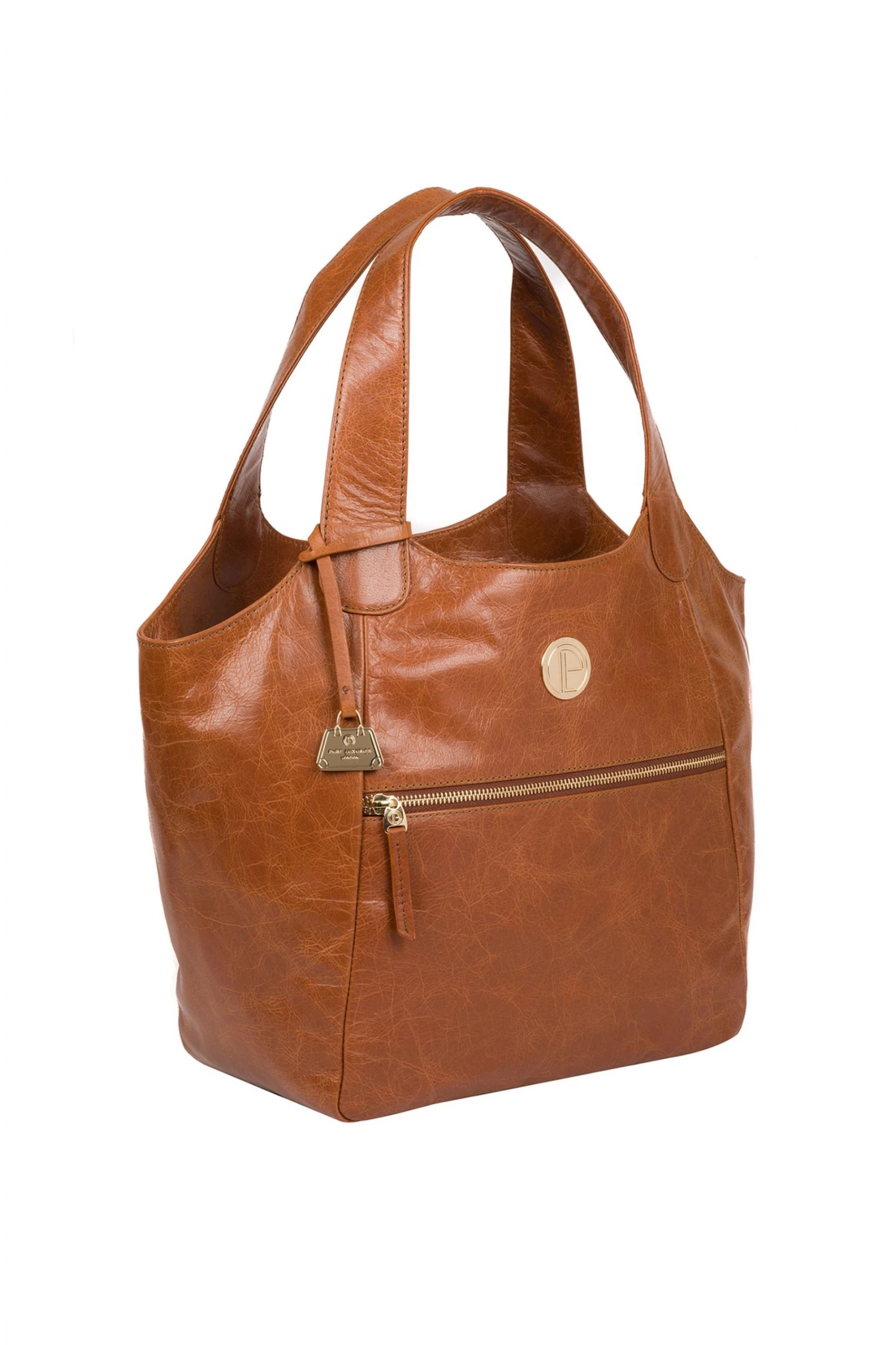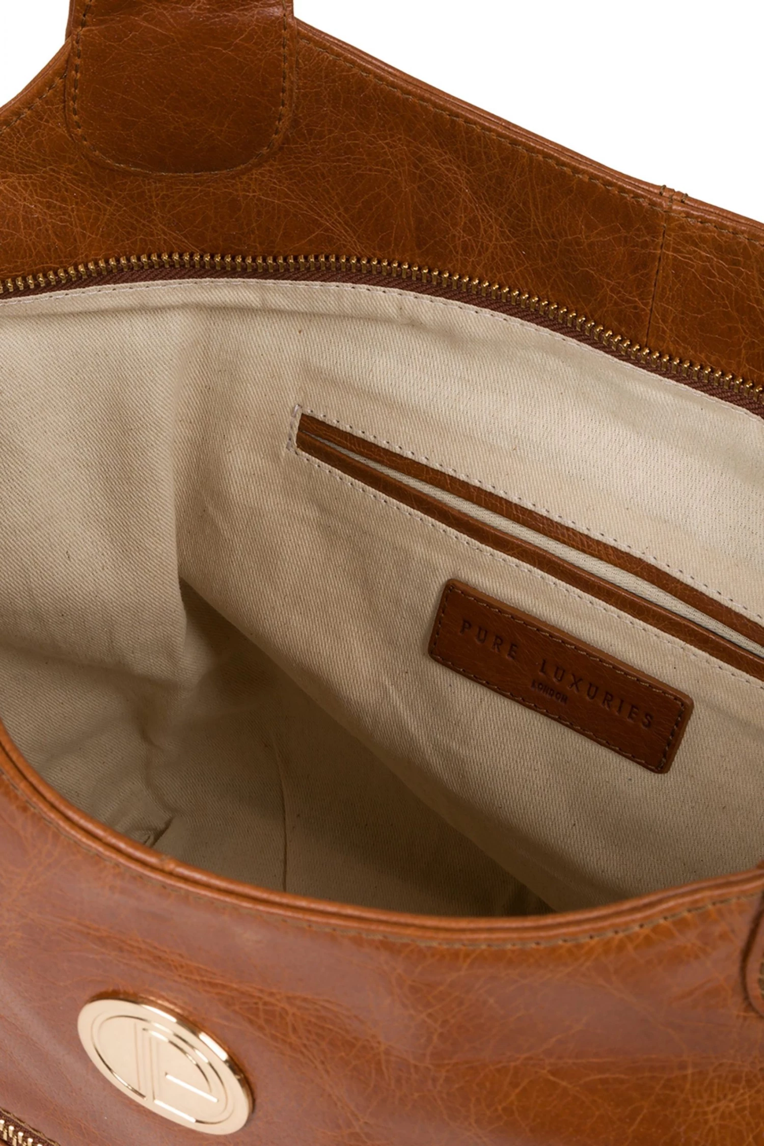 With Pure Luxuries’ Bloomsbury Collection, Pure Luxuries designers have created a truly striking range of bags using opulent natural materials and handcrafted from natural leather for a refined characterful soft-touch. The high-quality finish achieves a beautifully multi-toned colouring and gold coloured metal zips and fittings adorn the bag for an eye-catching look. Storage space is provided by a zipover top which conceals a natural, untreated 100% cotton lining as well as two slip pockets and a stylish zipped pocket on the exterior. Adorned with cute and attractive gold plaque and charm which add that special Pure Luxuries touch to the bag and finished with a flat leather straps for a versatile carrying option.