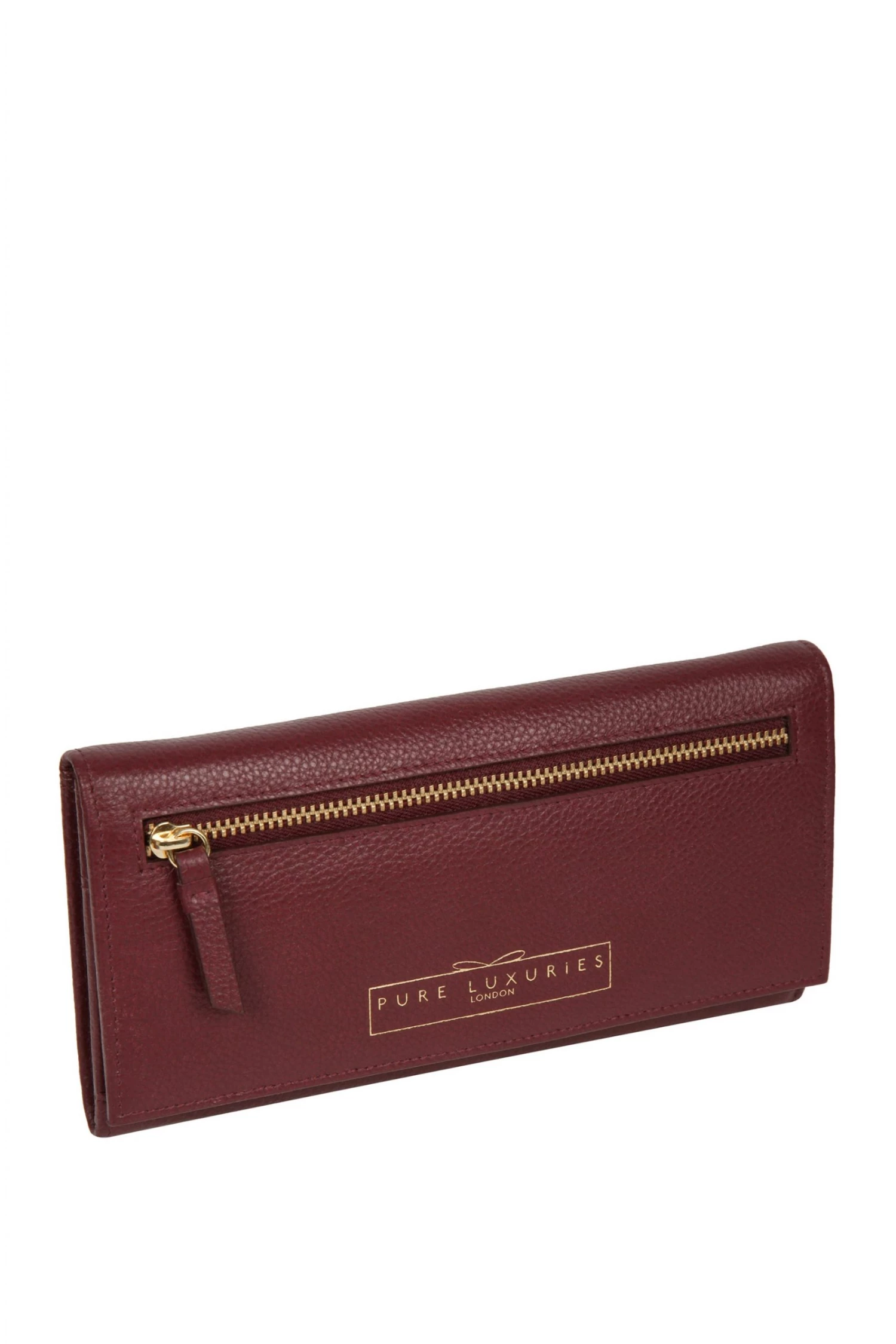 The ‘Monika’ purse is handcrafted from natural leather for a distinct and textured look. Featuring a magnetic stud design securing the main storage compartment lined with natural, untreated 100% cotton. This spacious purse includes thirteen card slots, plus a mesh ID slot alongside a split central note and receipt pocket, providing ample storage space. With an additional pocket on the rear enclosed by a zip-fastening for keeping coins safe and secure. Finished with the gold foil embossed ‘Pure Luxuries’ logo for a touch of stylish sophistication and comes in the beautifully branded cotton pouch, perfect for gifting.