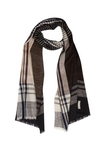 The Mono pashmina from Pure Luxuries London is woven from 50% cashmere and 50% merino wool blend for a soft yet durable feel. Features a monochromatic design with contrasting stripes. This versatile accessory can be worn around the neck as a neckerchief or as a smaller traditional scarf, adding subtle sophistication to your outfit. Presented in a 100% cotton Pure Luxuries branded pouch, ideal for gifting.