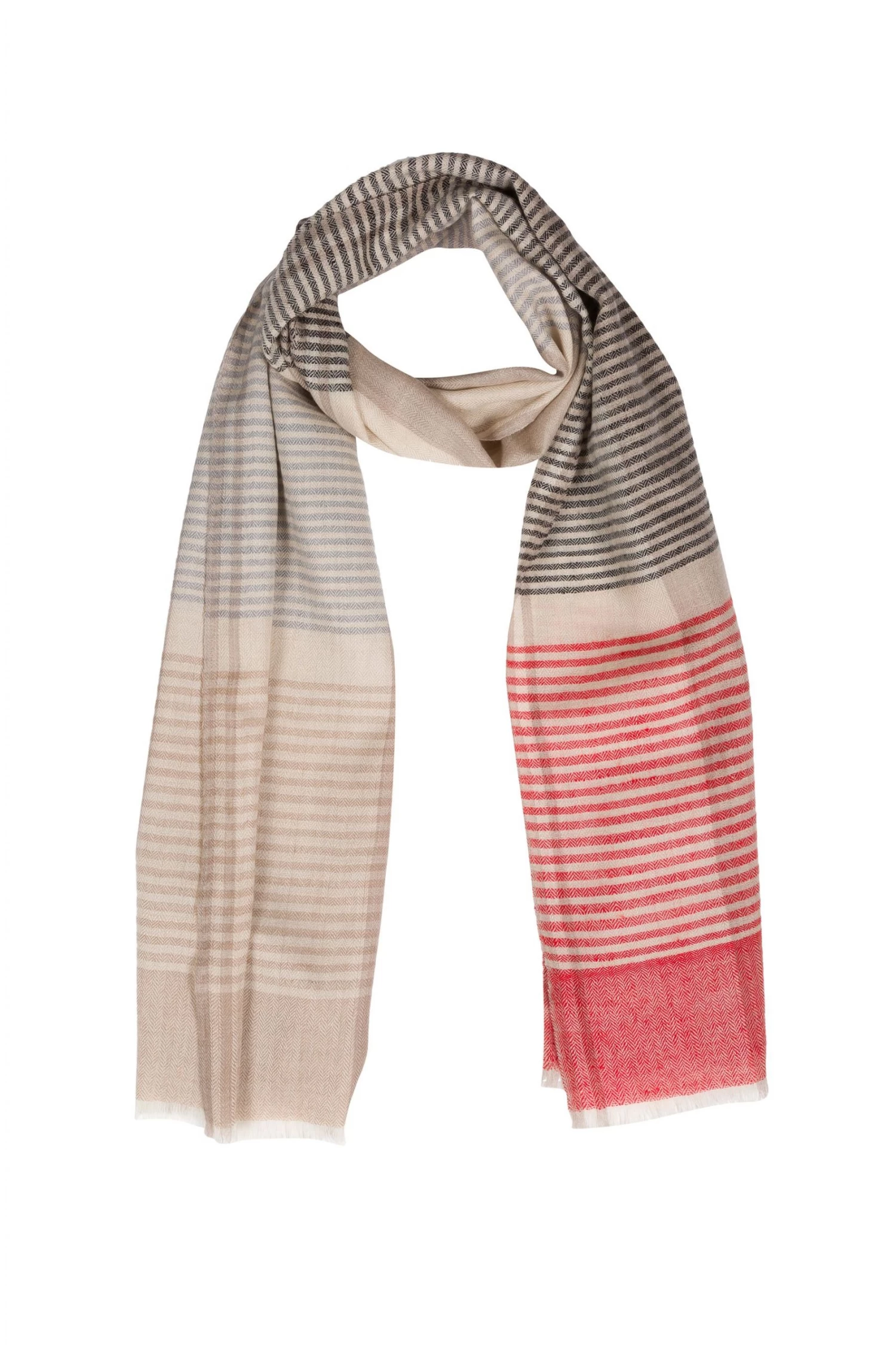 The Neptune scarf from Pure Luxuries London is woven from 50% cashmere and 50% merino wool blend for a soft yet durable feel. An elegant mix of red, black and tan with a striking off white. This versatile accessory can be worn around the neck as a traditional scarf, adding subtle sophistication to your outfit. Pair with our other matching cashmere accessories. Presented in a 100% cotton Pure Luxuries branded pouch, ideal for gifting.
