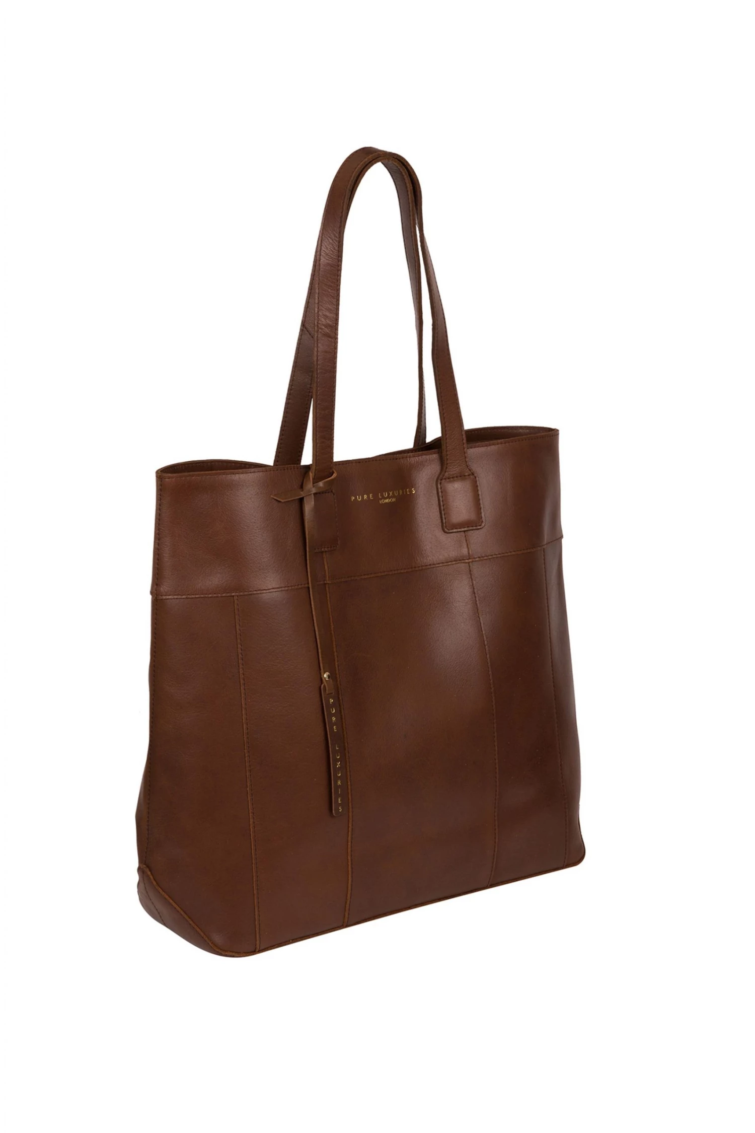 Pure Luxuries London Pembury Vegetable Tanned Leather Shopper Bag Ombre Chestnut