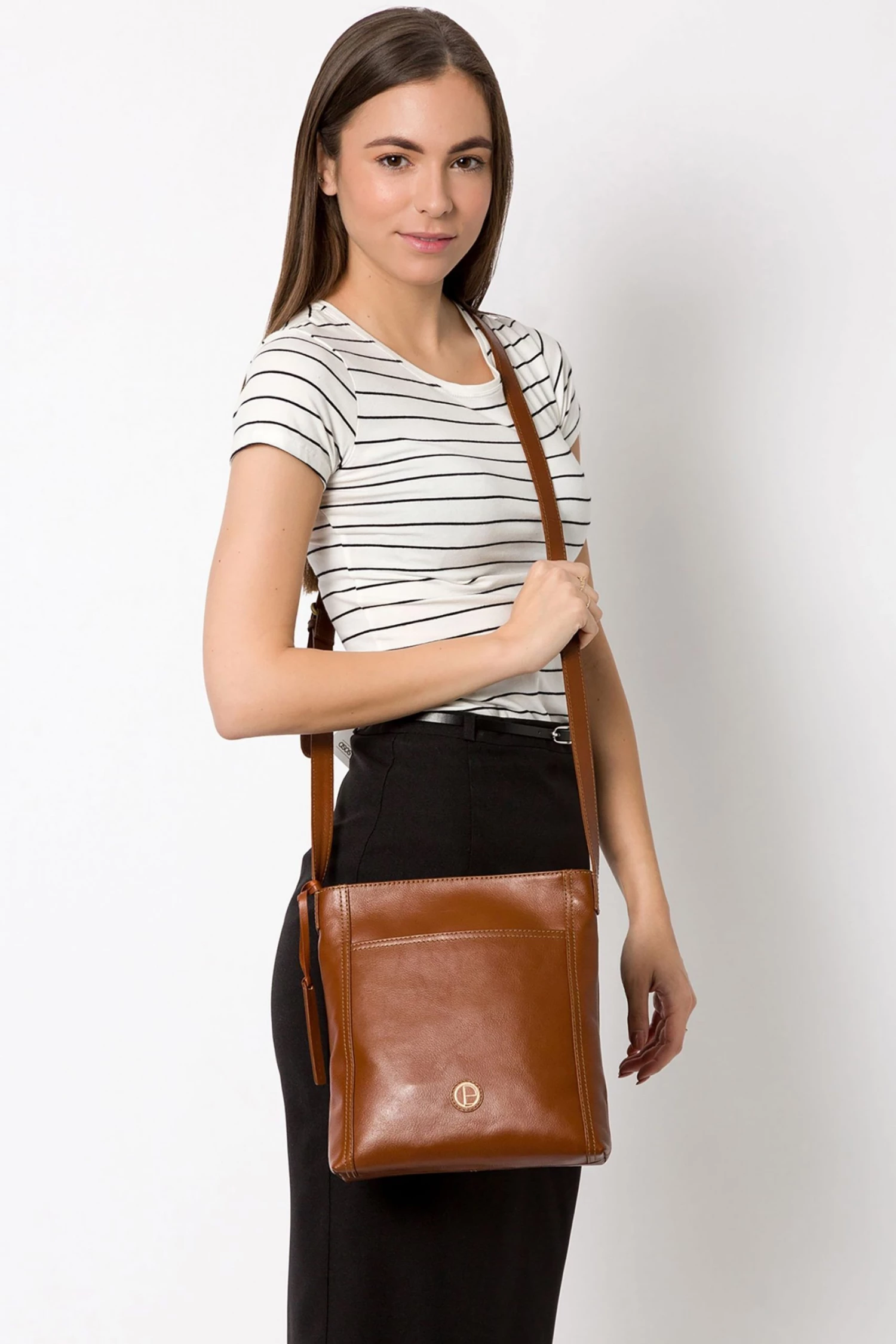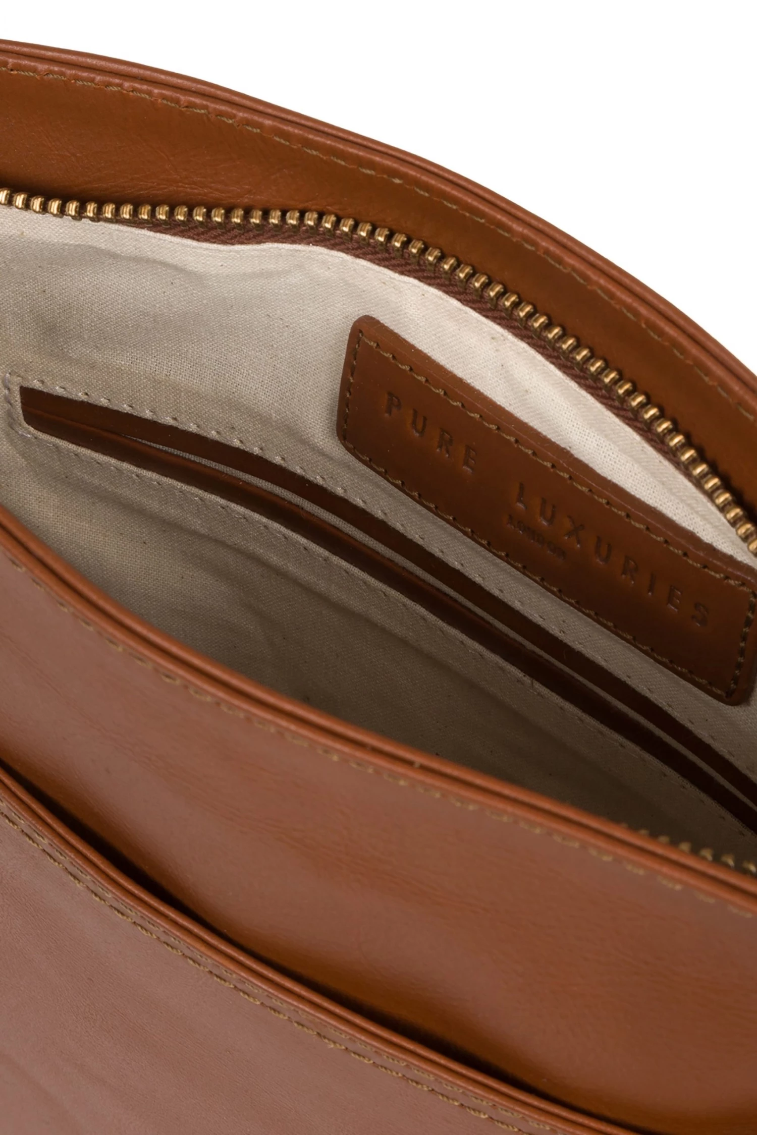 The Plumpton cross body bag from Pure Luxuries London is crafted from natural leather that has a luxurious patina and is adorned with an adjustable leather strap with a drop length of 60cm. A zip-over top conceals the main compartment that is lined with natural 100% cotton and is complemented by two internal pockets, perfect for your smart phone or keys and the two external slip pockets are great for on-the-go storage. Finished with the Pure Luxuries London logo and leather hanging charm.