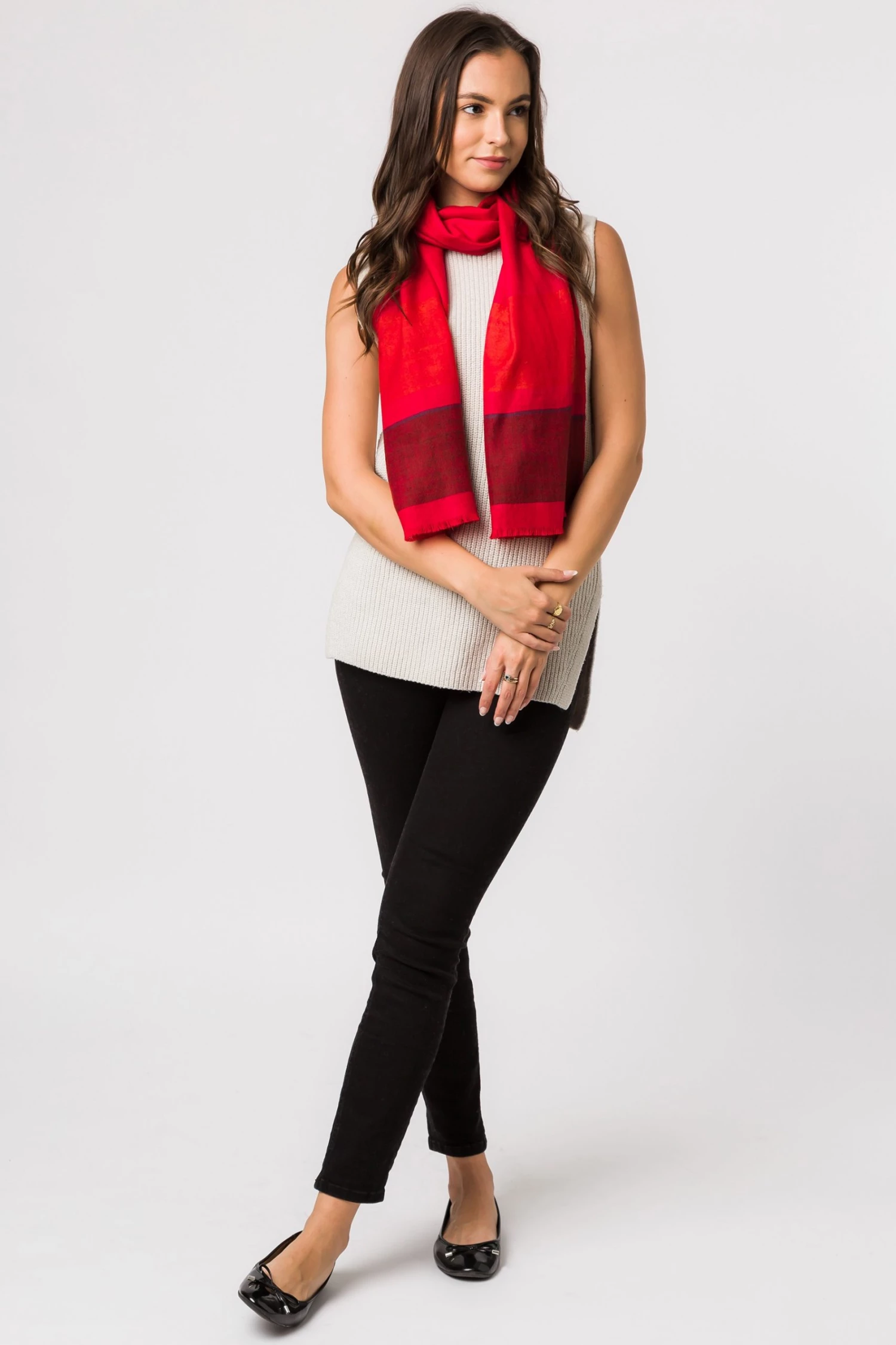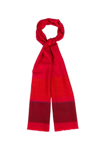 The ‘Blur’ pashmina from Pure Luxuries London is woven from 50% cashmere and 50% merino wool blend for a soft yet durable feel.An elegant yet bold style, featuring bright red and orange colours with a contrasting blue edging. Create eye-catching looks in an instant with this beautiful and classic accessory. Can be worn multiple ways around the neck, depending on your preference. Pair with our other cashmere accessories. Presented in a 100% cotton Pure Luxuries branded pouch, ideal for gifting.