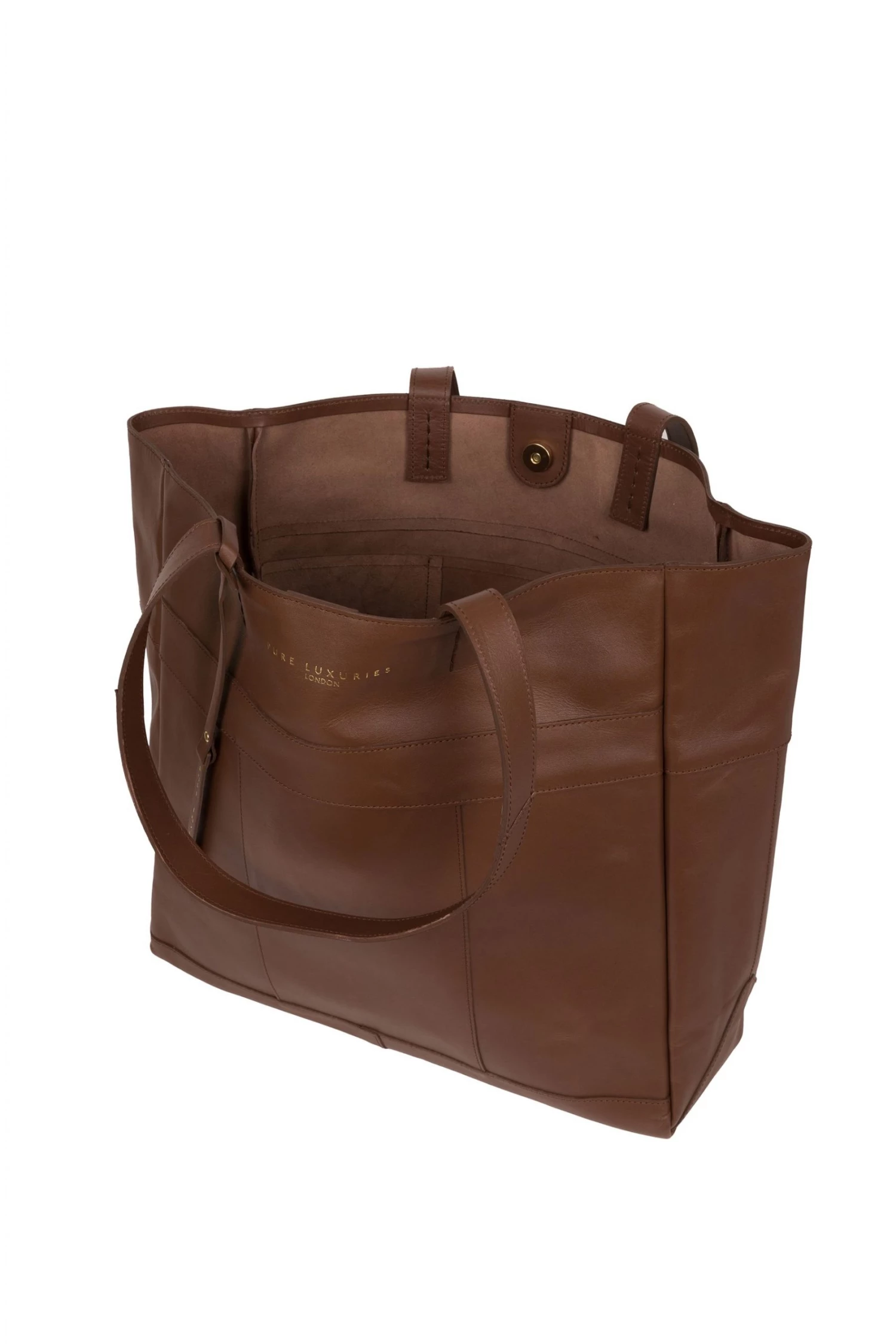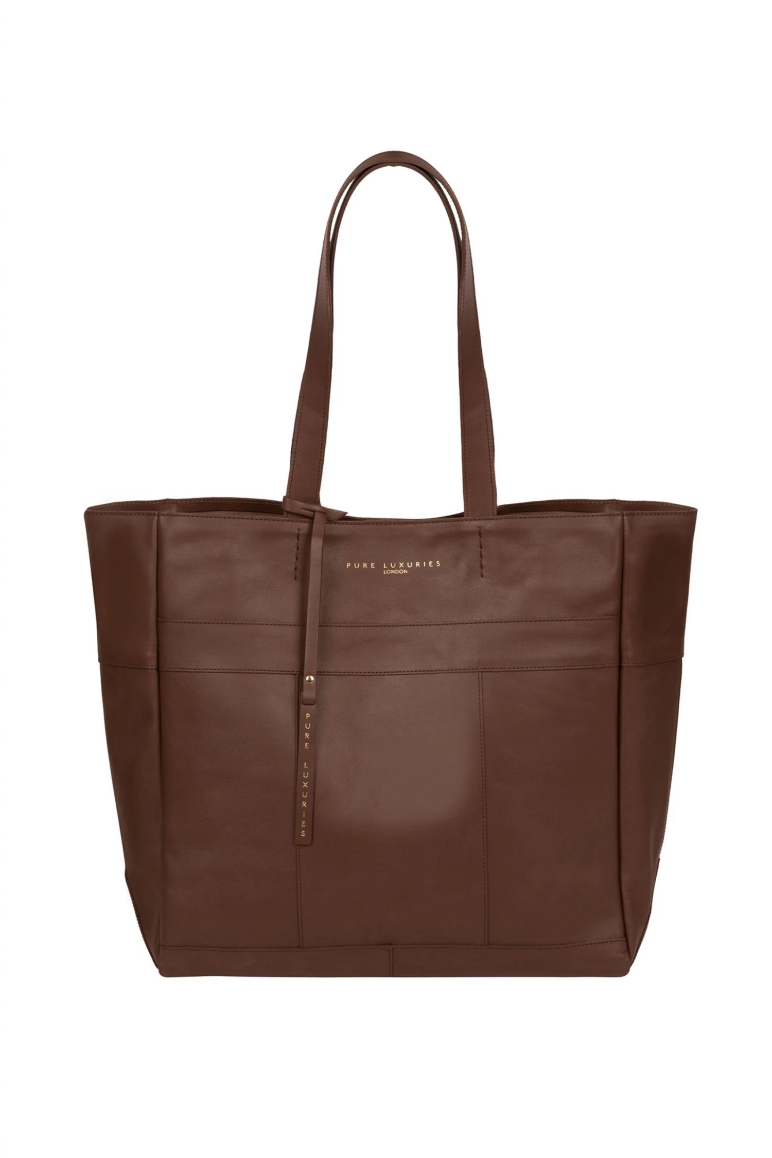 The Ripley leather tote bag is handcrafted from high-quality vegetable-tanned leather with a beautifully soft finish and is part of the Pure Luxuries Prestige Collection, elevating classic designs with high-quality materials and contemporary touches. A press-stud fastening secures an unlined and soft to the touch, natural leather interior with a fuss-free, spacious central compartment for convenient storage. Featuring matching leather carry handles for maximum comfort. Adorned with the stunning Pure Luxuries leather charm and gold logo for the perfect finishing touch.