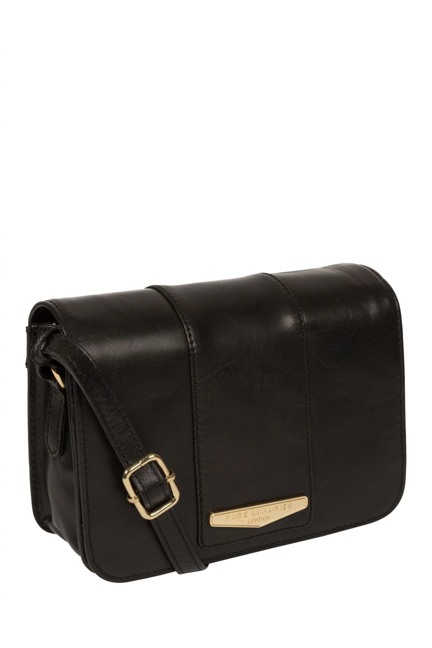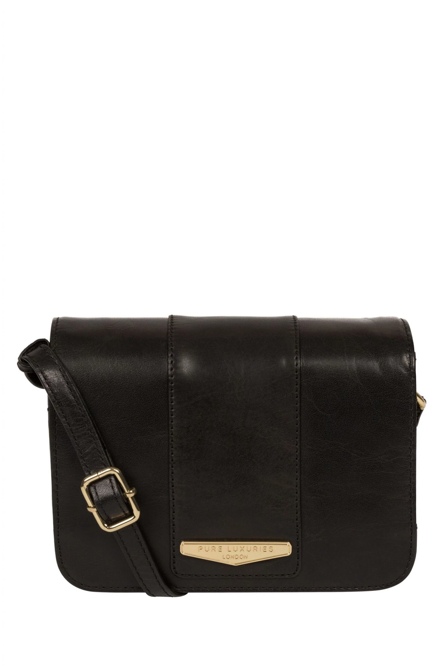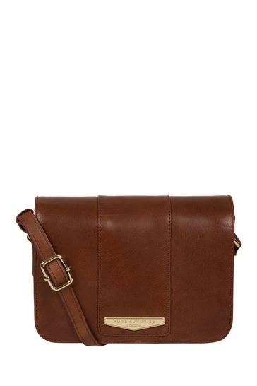 The Rosana cross body bag from Pure Luxuries London is crafted from luxuriously smooth, vegetable-tanned leather. A fold-over top secured by a magnetic stud, conceals a central compartment that comes lined with a natural and untreated 100% cotton for a flawless finish. Ample storage space is provided by three slip pockets underneath the fold-over top as well as a zipped pocket on the rear of the bag. Finished with a simple and elegant Pure Luxuries gold plated metal plaque.