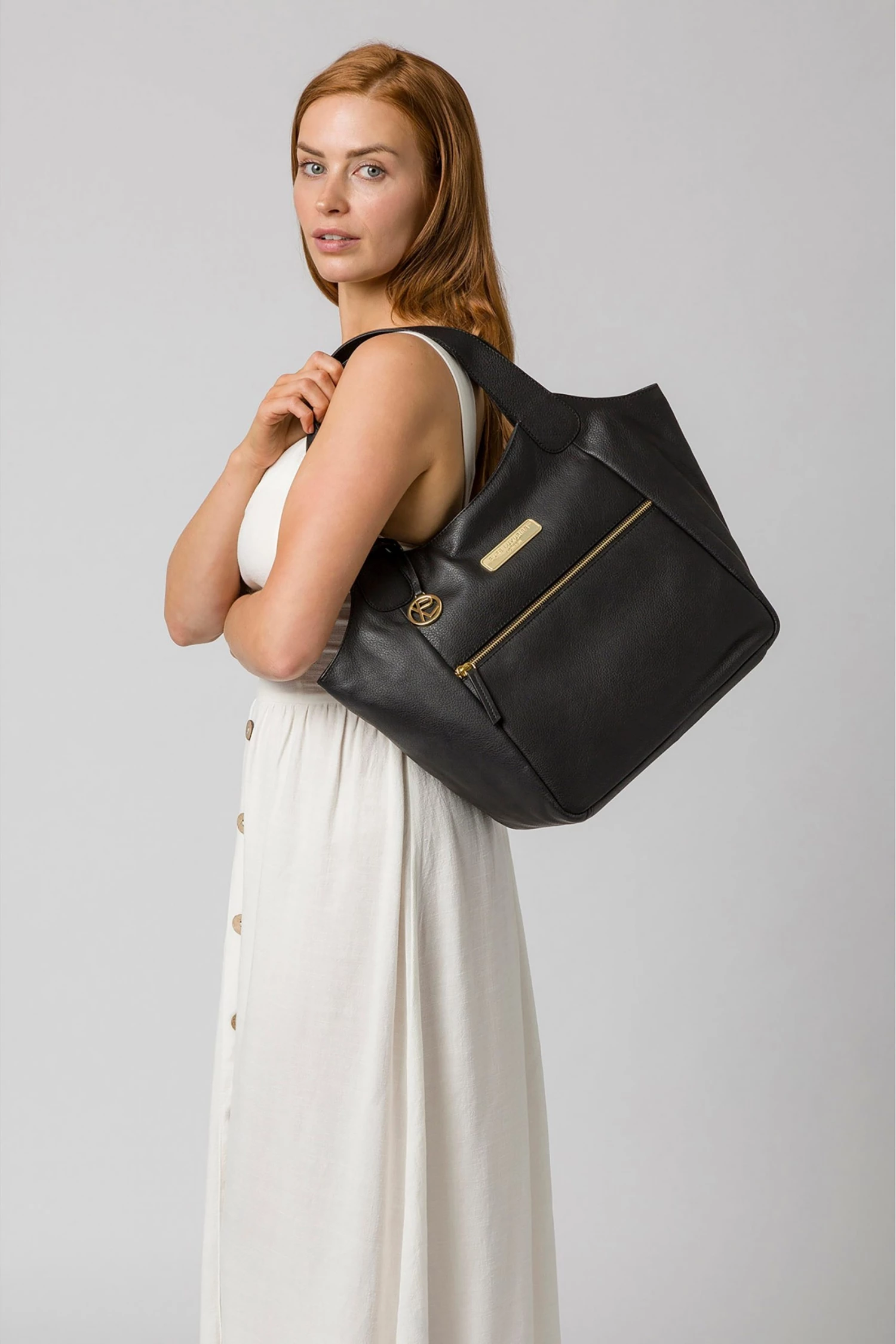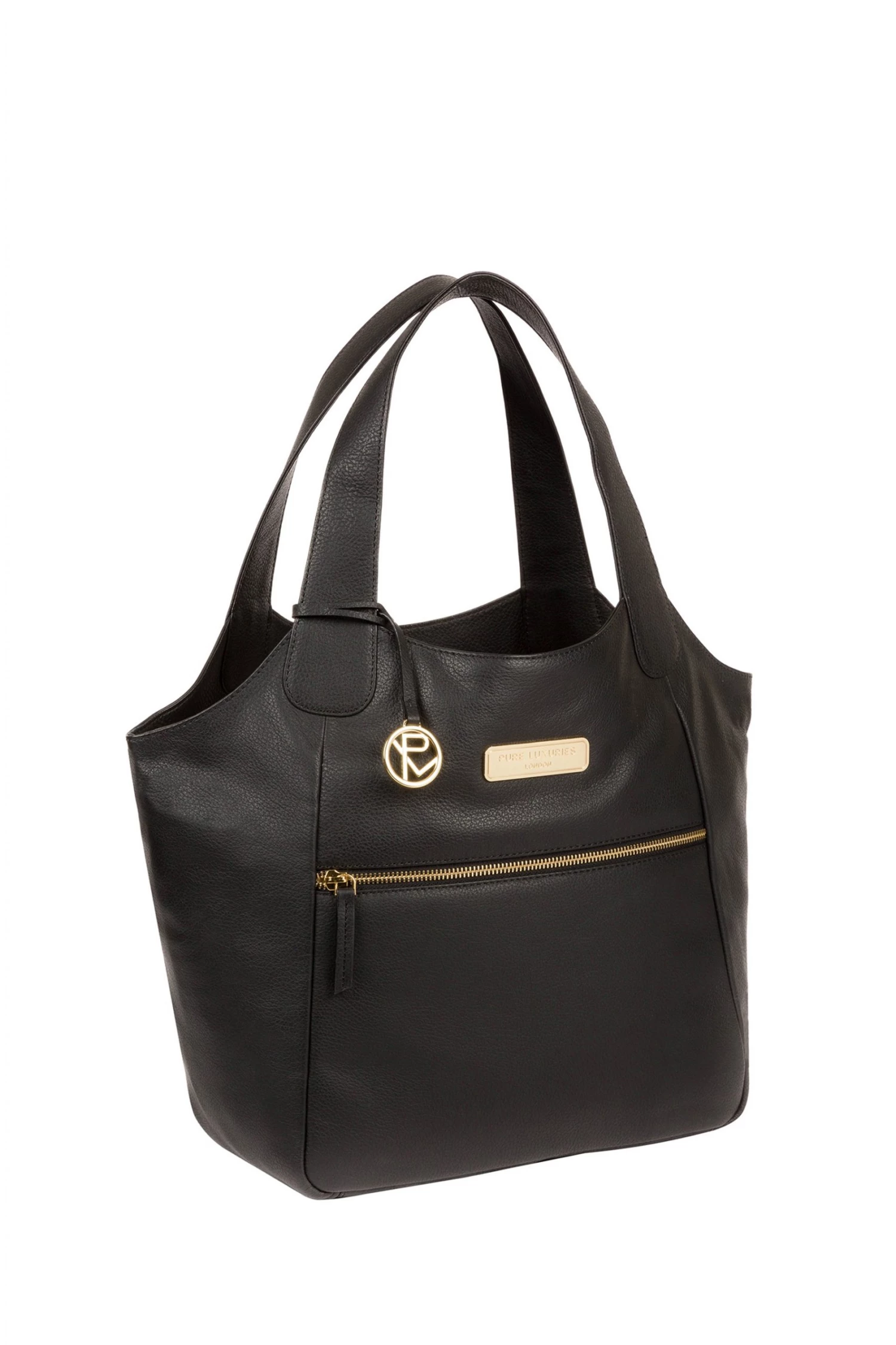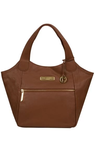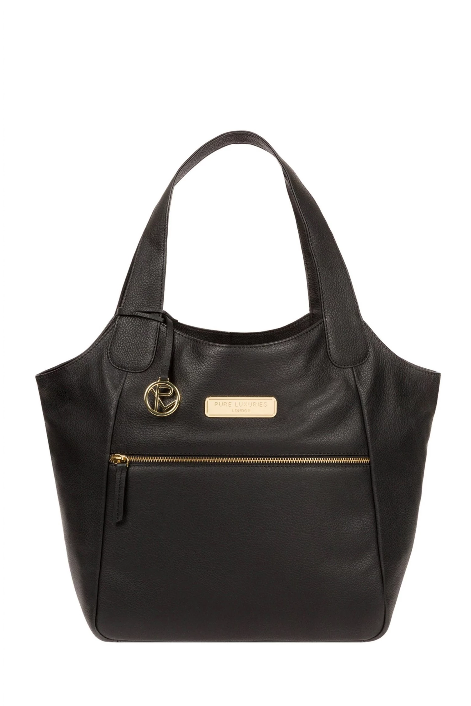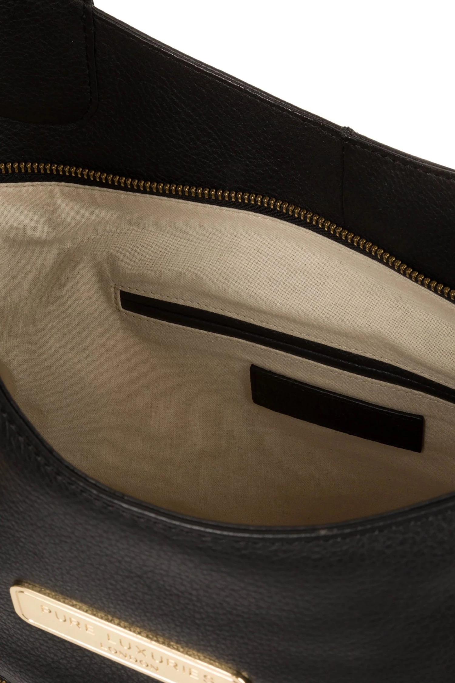 The Roxanne tote bag from Pure Luxuries London is handmade from genuine leather that has a rich and beautifully soft pebble-grain finish. A zip-over top conceals a central lined compartment made of natural and untreated 100% cotton and is fitted with a leather strap that gives this bag a stylish yet comfortable carry option. Adorned with the distinct golden Pure Luxuries charm and plaque for that stylish finishing touch.