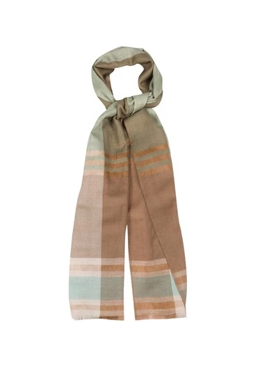 The ‘Asteris’ pashmina from Pure Luxuries London is woven from 50% cashmere and 50% merino wool blend for a soft yet durable feel. Features an eye-catching design with tan tones and contrasting greens and blue. Create eye-catching looks in an instant with this beautiful and classic accessory. Can be worn multiple ways around the neck, depending on your style and preference. Pair with our matching cashmere accessories. Presented in a 100% cotton Pure Luxuries branded pouch, ideal for gifting.