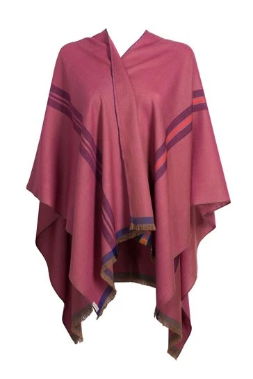 The Vision poncho from Pure Luxuries London is woven from 100% Merino wool for a luxuriously soft and cosy feel. Features a unique pink-red shade with subtle purple, orange and blue stripes along with fringing detail to finish. Elegant and versatile perfect for layering when the temperature drops, featuring a contemporary shape that can easily be dressed up or down. Presented in a 100% cotton Pure Luxuries branded pouch ideal for gifting.